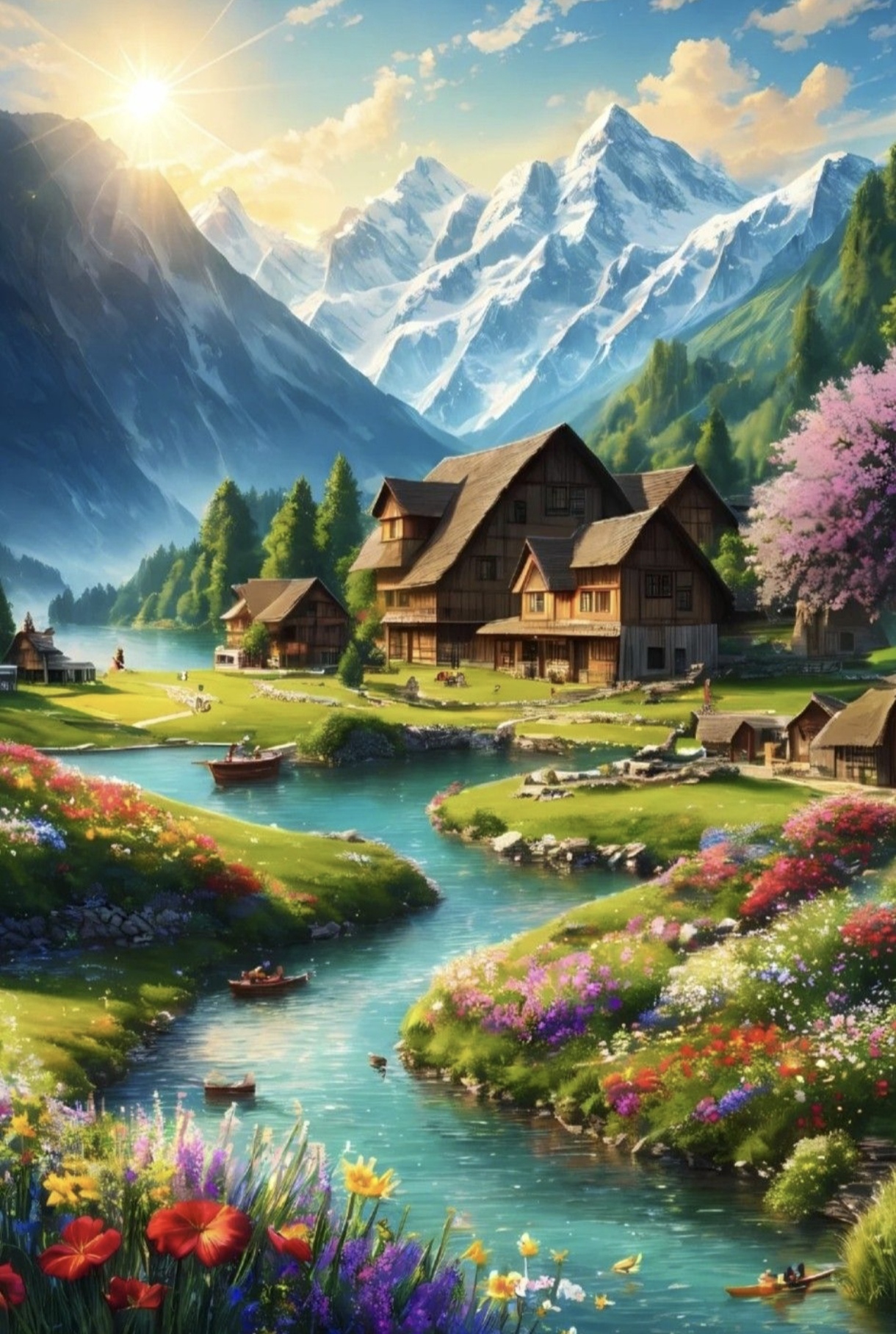 Ζωγραφική με Αριθμούς Σπίτι στο Λιβάδι 2 40×50 με πλαίσιο